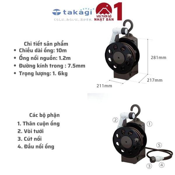 Thiết kế: Thông minh, có tay quay ống cuộn tiện lợi khi thu dây giúp tiết kiệm không gian lưu trữ dây và vòi cũng như sẵn sàng để sử dụng bất cứ lúc nào.